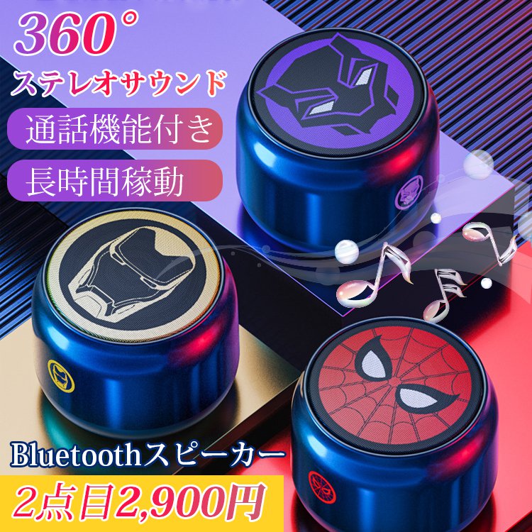 【アベンジャーズコラボ大音量Bluetoothスピーカー】HIFI音質、合金ボディ、通話機能付き、長時間稼動、コンパクト